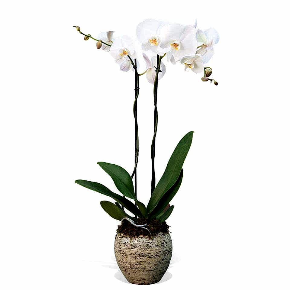 An absolute classic! Whenever you’re not sure about the gift that you may want to send to your loved one, rest assured that the white phalaenopsis orchids will always do the trick, no matter what the occasion. This magnificent large orchid has been placed beautifully in a large ceramic pot with the green moss on top.