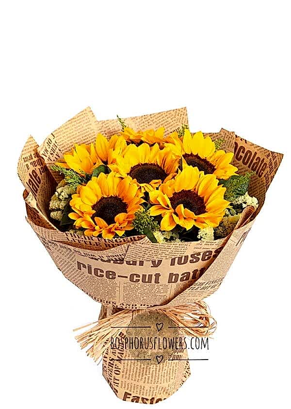 There are 7 Sunflowers and Green Decorations in the Product.